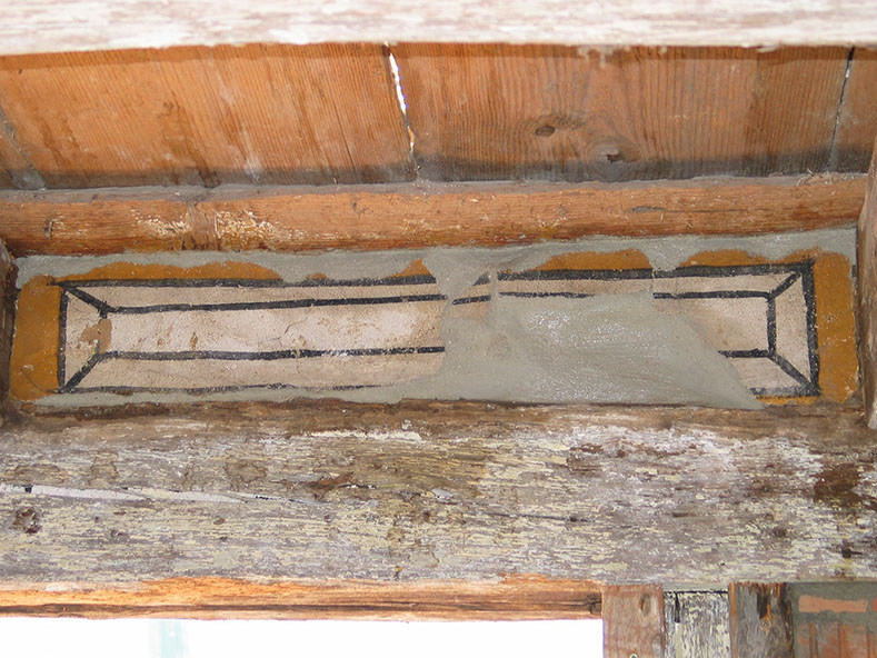 Durch eine Rekonstruktion werden vollständig abgängige Teilbereiche einer Dekorfassung wieder zurückgewonnen.