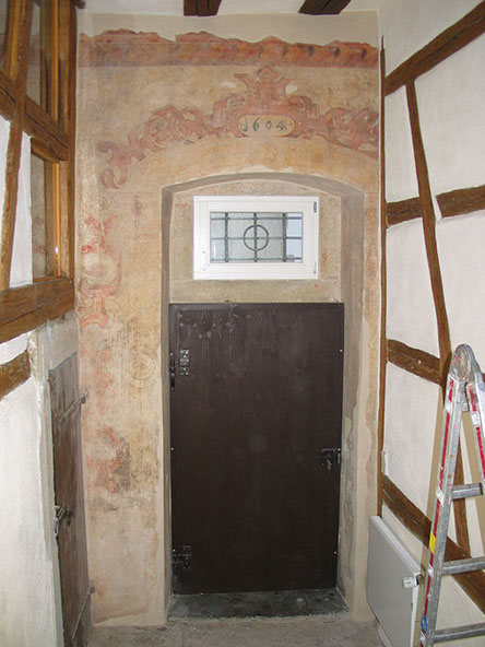 Vor Maßnahmebeginn wird an und in denkmalgeschützten Gebäuden eine restauratorische Untersuchung durchgeführt, um evtl. noch erhaltene Putzlagen und Farbfassungen früherer Ausgestaltungen zu erfassen