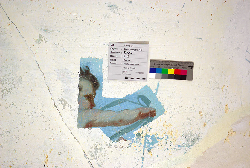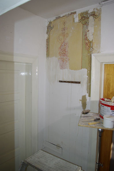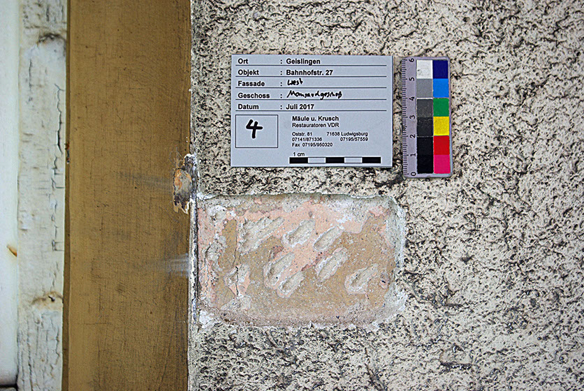 Vor Maßnahmebeginn wird an und in denkmalgeschützten Gebäuden eine restauratorische Untersuchung durchgeführt, um evtl. noch erhaltene Putzlagen und Farbfassungen früherer Ausgestaltungen zu erfassen