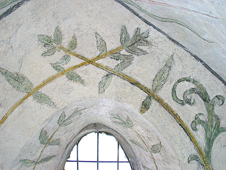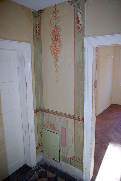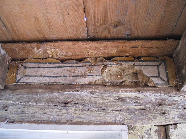 Durch eine Rekonstruktion werden vollständig abgängige Teilbereiche einer Dekorfassung wieder zurückgewonnen.