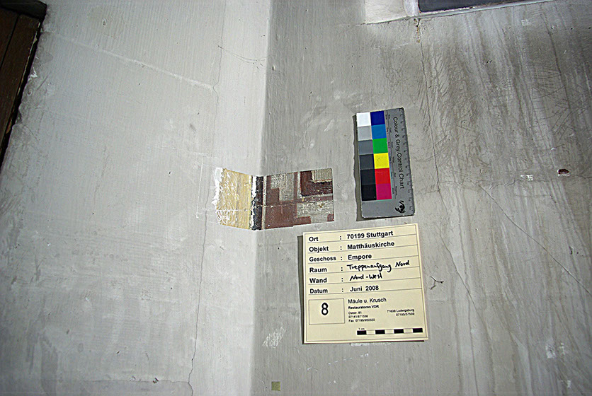 Vor einer projektierten Restaurierung oder Neufassung werden Musterflächen angelegt, welche alle nachweisbaren Farbtöne und Dekore einer bestimmten Epoche wiedergibt.
