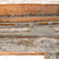 unter der modernen Sichtputzlage ist der ursprüngliche Verputz mit Anstrichlagen erhalten